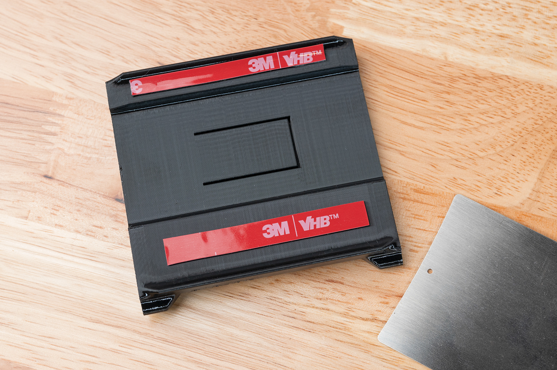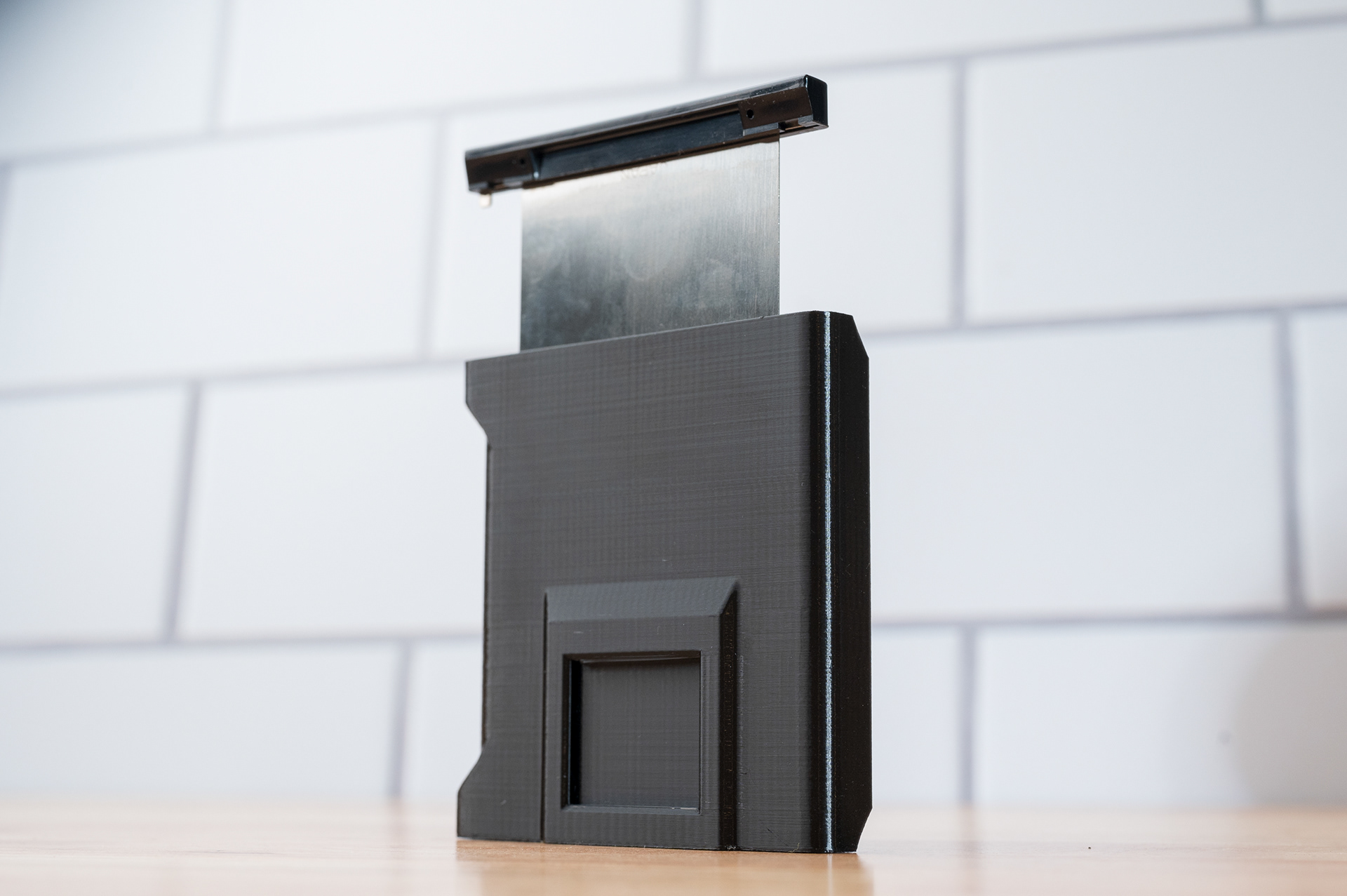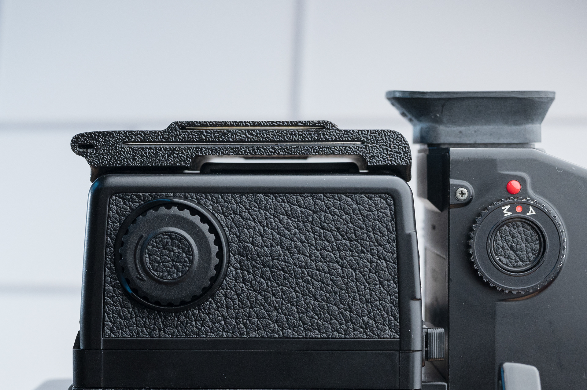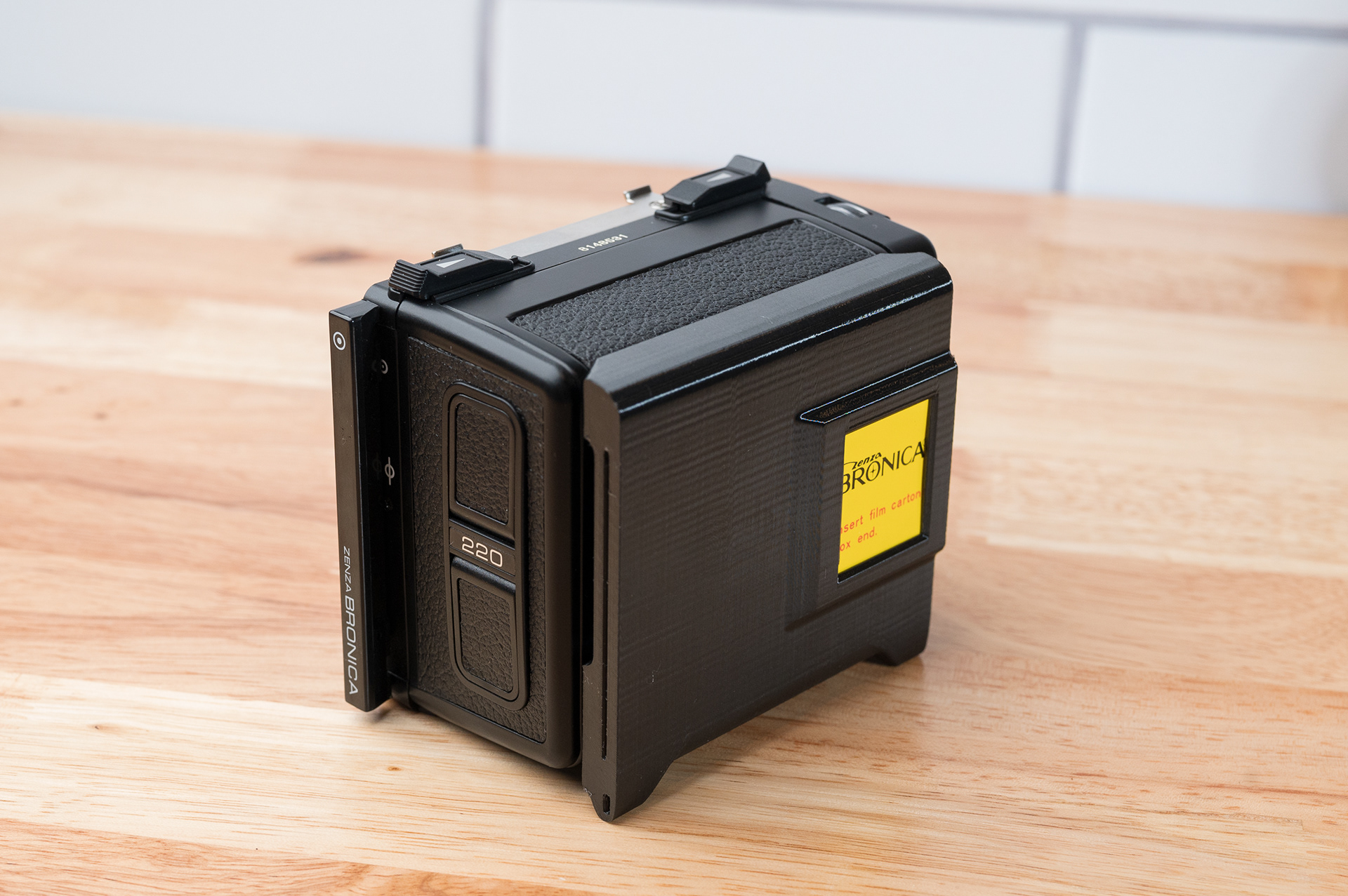 Like the Bronica SQ series, the ETR series has been long overdue for a more convenient dark slide storage solution. This dark slide holder solution adheres to the back of Bronica ETRĀ film backs using double-sided adhesive. It allows storage of the dark slide from either side and contains a memo holder for your film reminder. Slim design ensures backs can still be exchanged with the metered prism mounted. Printed using standard black PETG.